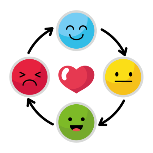De kleuters kijken naar jou en bootsen de uitdrukking na, in de kring of eventueel voor een spiegel. Je kan verschillende emoties afwisselen en samen benoemen wat ze zien.